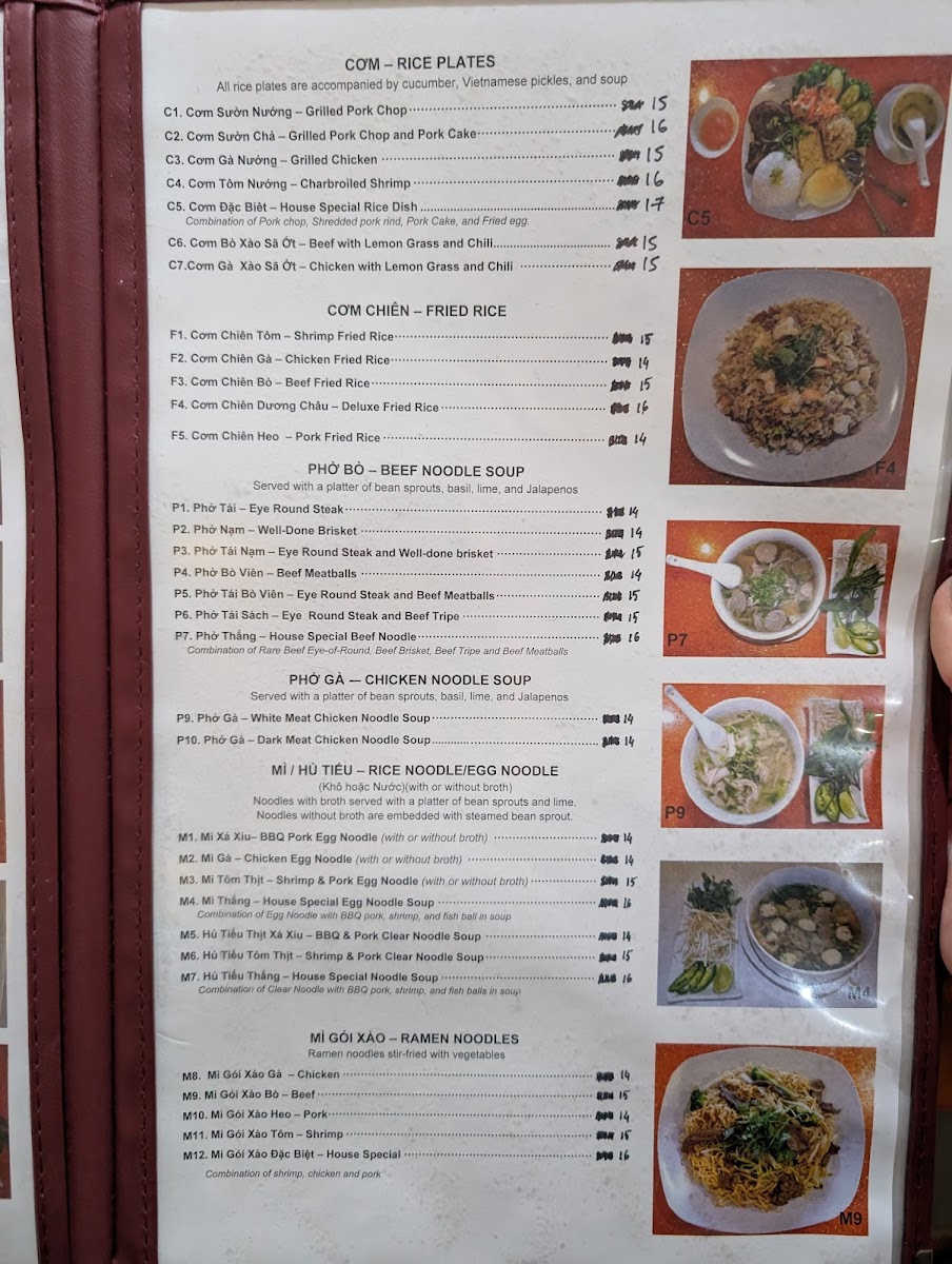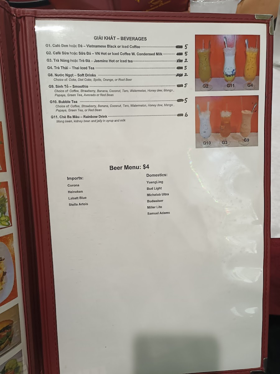The menu here is a treasure trove brimming with delightful offerings. Highlights include the classic Eye Round Steak and Beef Tripe Beef Noodle Soup, a bowl that boasts a rich beef broth, aromatic herbs, and tender cuts of meat. Customers rave about the House Pho Tai Bo Vien, which is packed with rare beef and beef meatballs, showcasing a delicate balance of flavors that’s both rich and satisfying. Don’t overlook the tantalizing BBQ Pork Sandwich or the refreshing Shredded Pork Rind Rolls, which bring together fresh ingredients wrapped in rice paper for a culinary delight that bursts with texture and taste.
